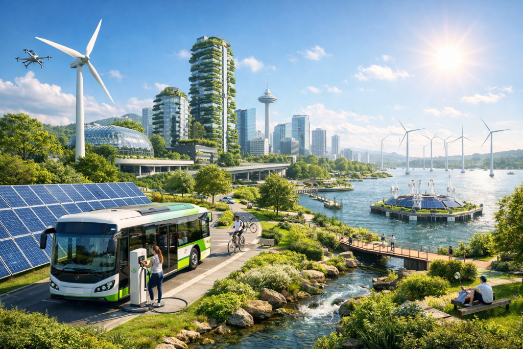 Bus listrik, kereta ringan, dan stasiun pengisian daya publik adalah infrastruktur penting dalam transformasi ini. Selain mengurangi polusi udara, kendaraan listrik juga menghasilkan tingkat kebisingan yang lebih rendah. Lingkungan kota menjadi lebih nyaman dan sehat bagi penduduknya.